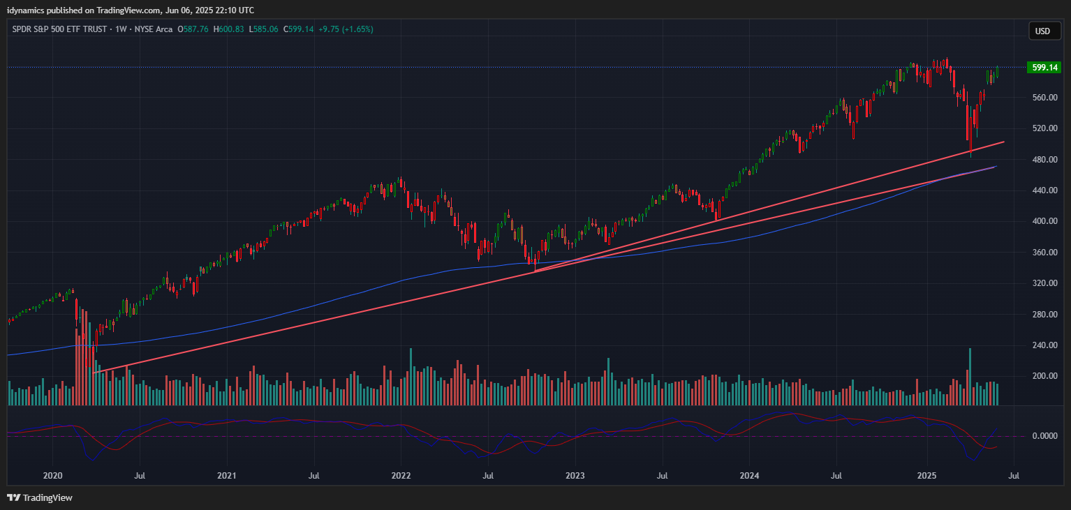 Initially, Thursday’s minor timing looked to setup reversals, but the Nonfarm Payrolls data on Friday sent stocks soaring (on weak volume) along with bond yields. Bonds collapsed on the day and the 10YR moved back above 4.50%. Even the 2YR soared on Friday, closing the day above 4%. The BIG problem with the data on Friday is the “establishment” take versus the number of downward revisions on the previous numbers and the rest of the labor market data that shows fractures in the employment outlook in the USA…mirroring what we are seeing across Europe. The actual data in Household Surveys show losses in the past six months of -870K jobs. Eventually, the real data will catch up with the pedestrian data. There now is -625K workers that simply are OUT of the labor force in the past year…they do not get counted, which is why the May Unemployment numbers do not account for the labor force dropouts. In addition, Manufacturing Jobs DROPPED by 8K in May. Almost every single category, except food and metals, in U.S. manufacturing saw declines in the May report. The actual payrolls increase was around +40K in May, in line with the ADP number released on Wednesday. Expect a -100K revision for June numbers.