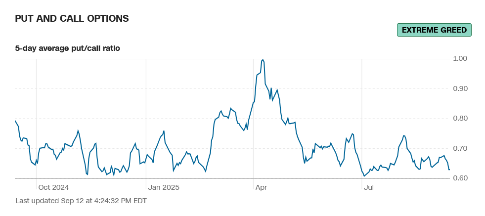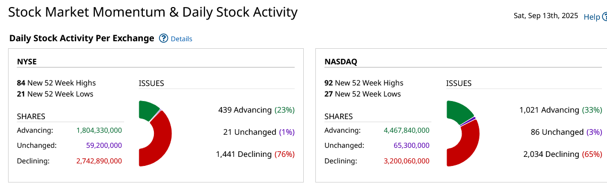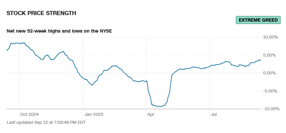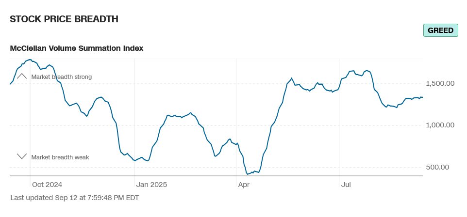 Breadth was weaker in Friday’s trade and was flat on the week. Sentiment still reads greed.