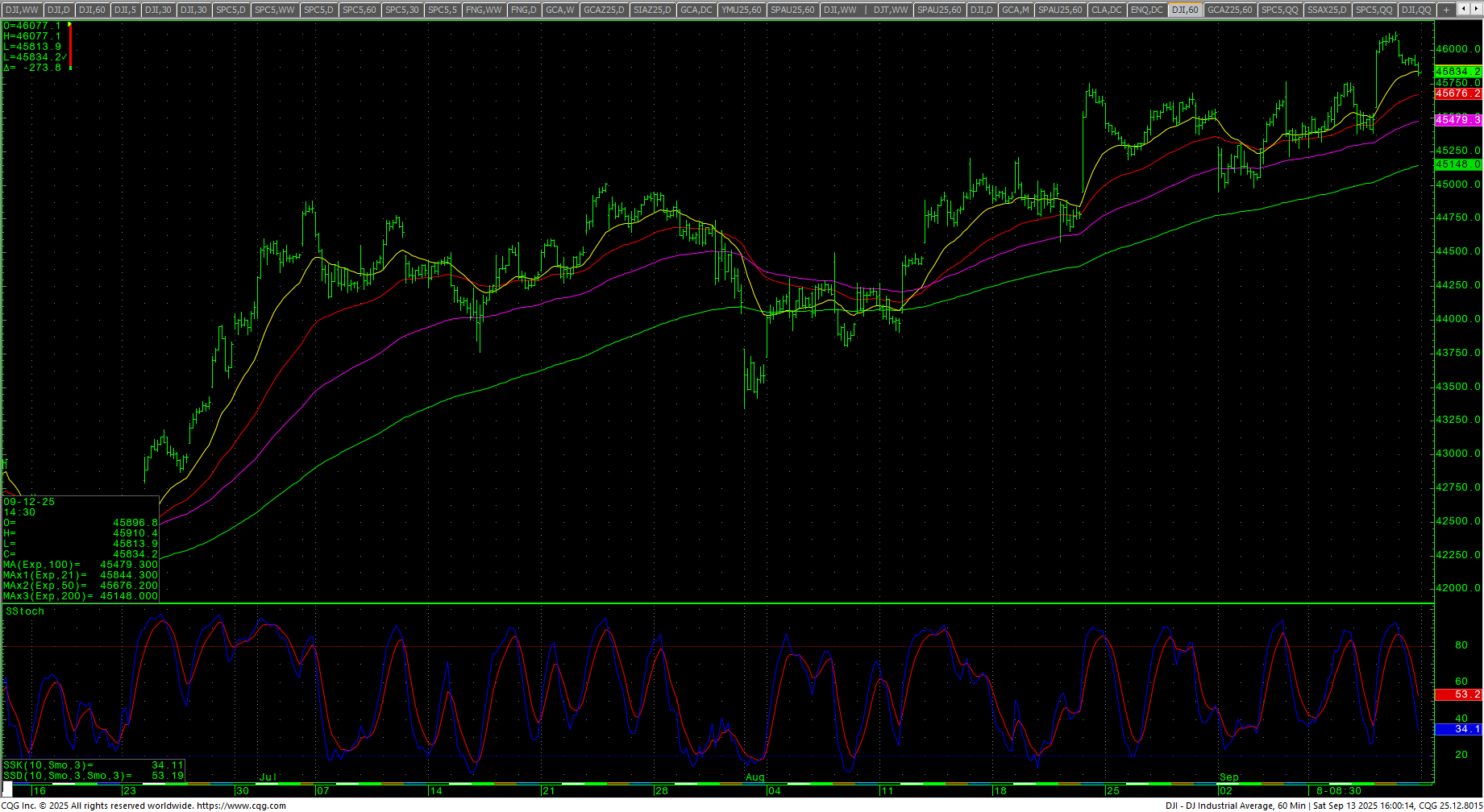 Resistance is 45975 and 46013/46015. A drive above 46015 sets up key resistance now at 46062/46077. Closes over 46077 sets up 46134 and 46206 to 46278. Resistance is critical at 46368 and closes above that level count to 46494 and 46566. Closes over 46566 setup a move to 46710 with counts to 46854. A drive above 46854 would offer fuel toward longer-term monthly targets in the 47400 level with targets at 46998/47000.
