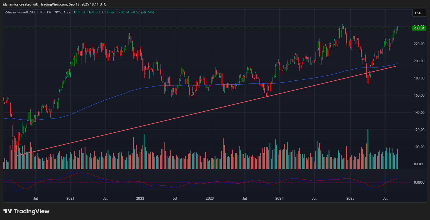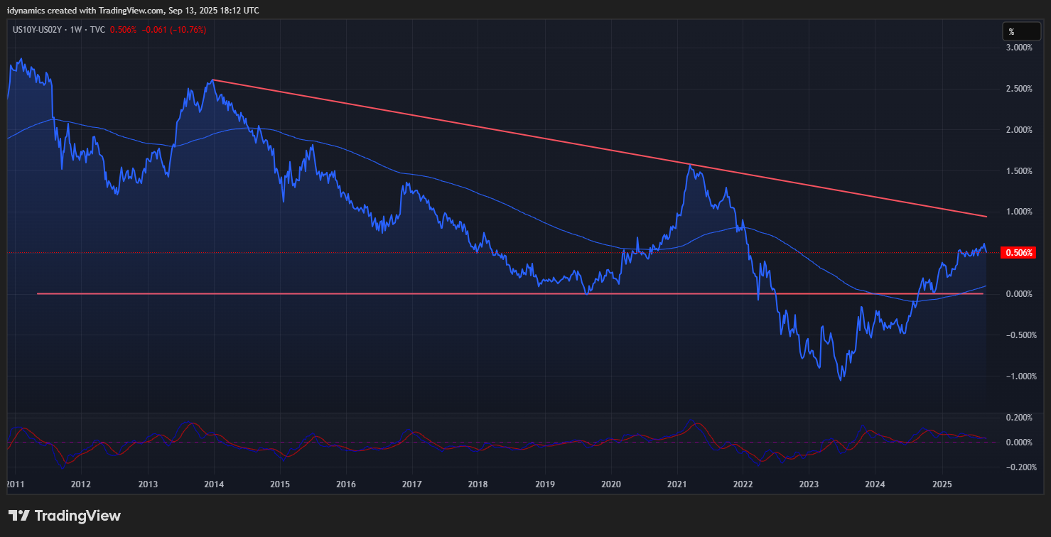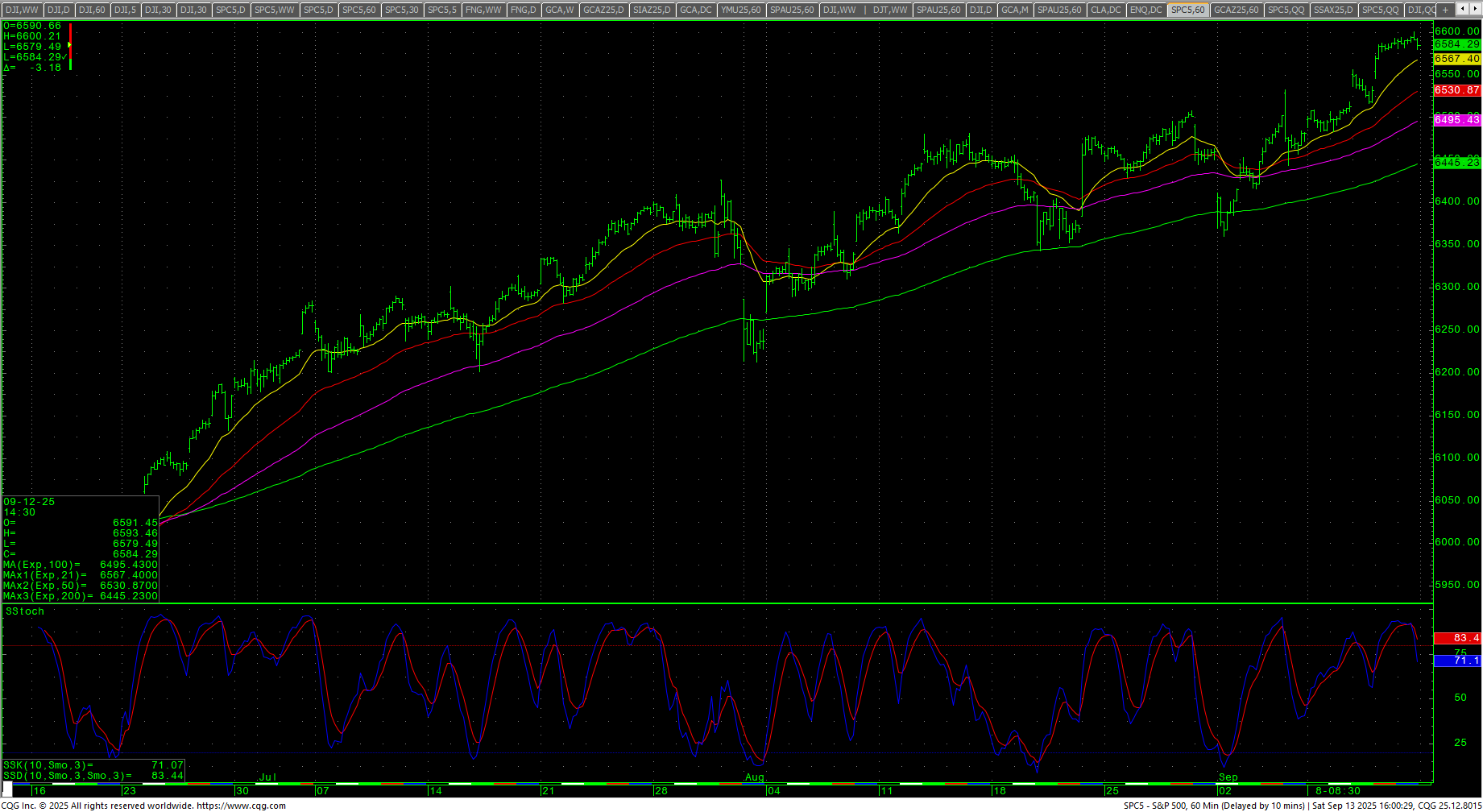 The RSP:SPY continues to drag into multi-year lows. The weekly is trending lower in an oversold position and the MACD is down. Resistance is still .294. The IWM tested record highs and closed in the middle of the range up +0.24%. The RSP set a record high and settled the up +0.28% in the middle of the range. NVDA roared back on the $ORCL news and closed on high of the week, up +6.47%. Bitcoin also bounced back and closed up +4.35%. Support remains pivotal at 110/108. McClellan Oscillators are neutral for the Dow. The Yield Curve expanded early and then narrowed, closing at +0.506%. The 10YR yield was flat, closing at 4.068%. Truflation jumped to 2.15%. Corporate bond spreads are at a 27-year low.