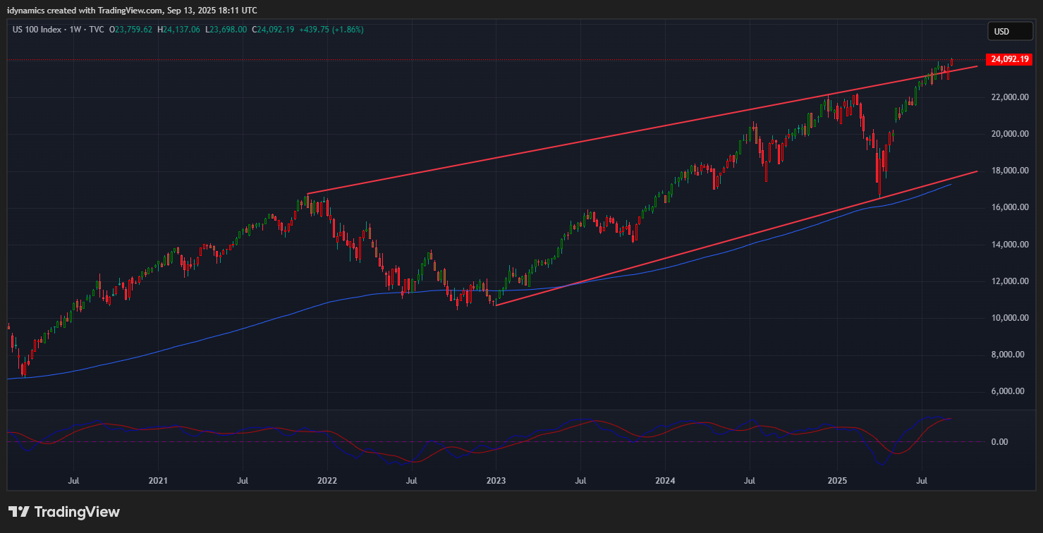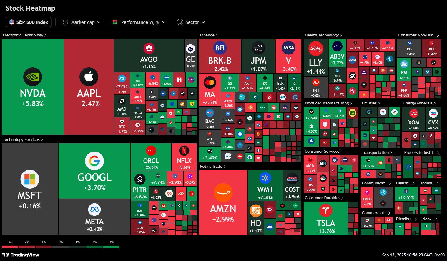 As goes tech, so goes the market. Stocks continued to climb the wall of worry to record highs with the main focus of the week on inflation data, which was mixed, unemployment claims which reached a four year high and bets on the rate cut coming this week in critical cycle timing. The week’s fundamental data is starting to look a lot like Stagflation is in the early stages.