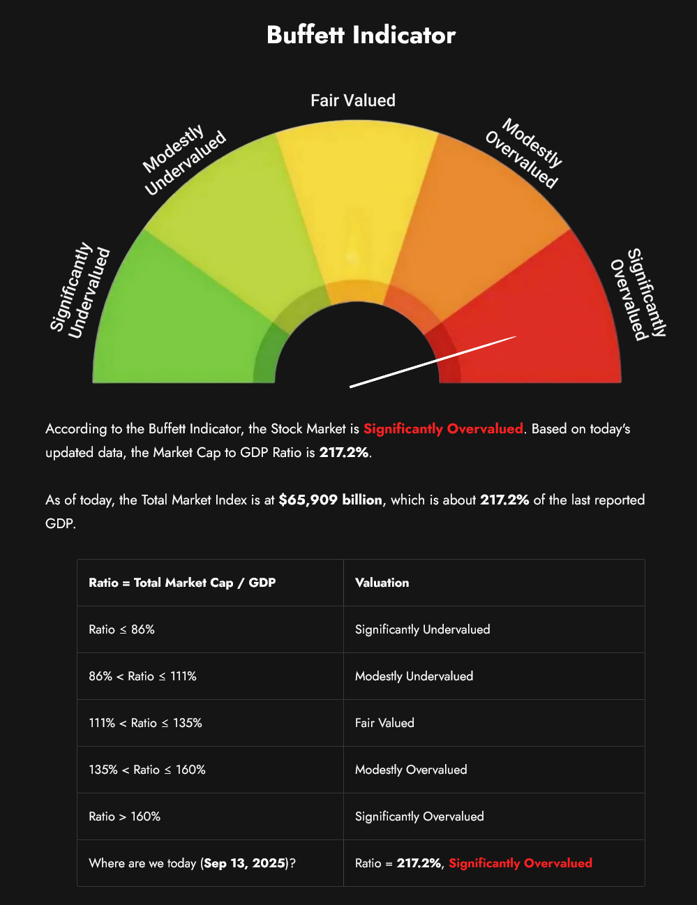 The VIX remains subdued and complacent. The Buffet Indicator hit another ATH above 217%. The SQQQ is in deep, deep complacency.