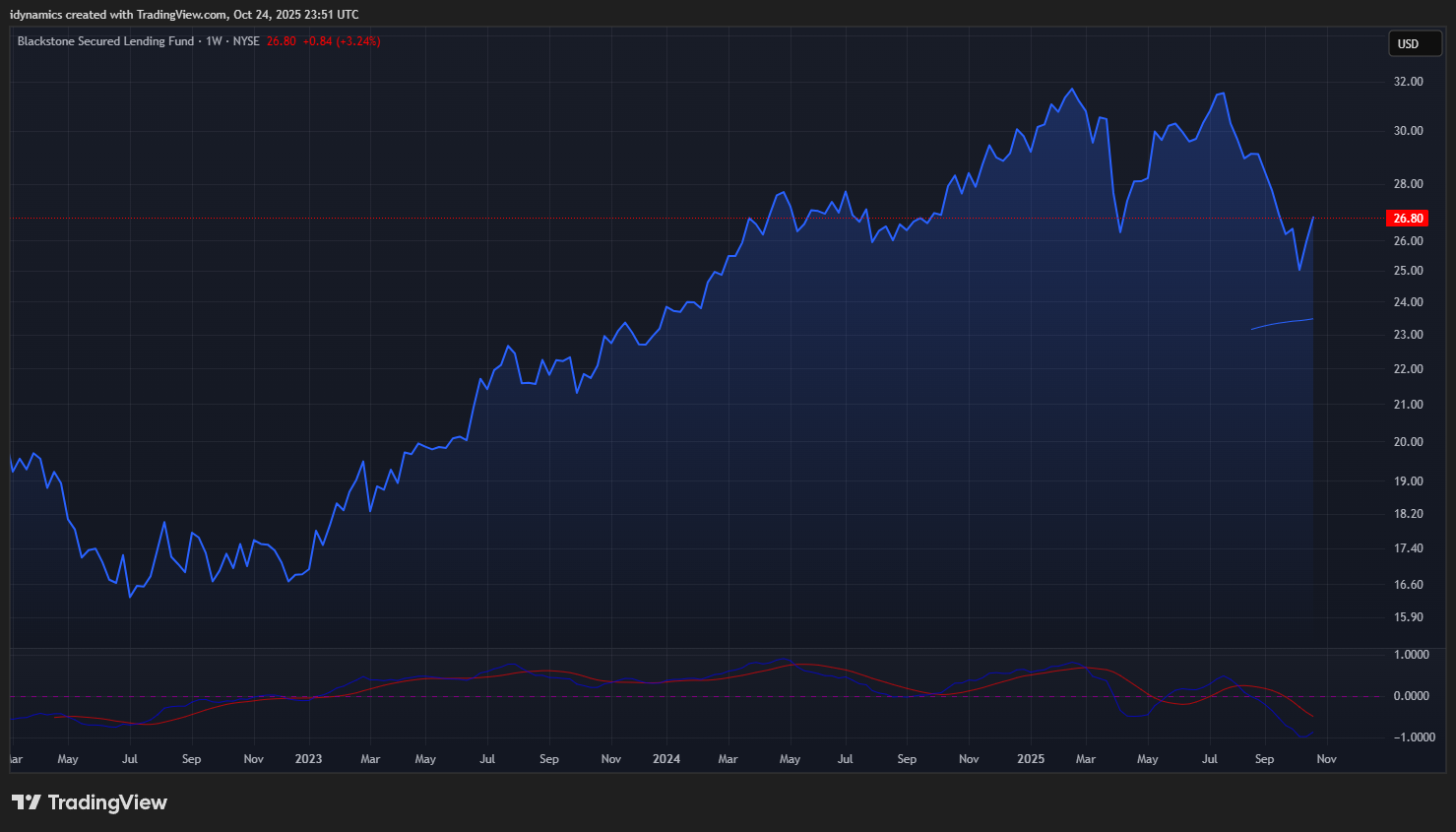 The Blackstone Secured Lending Fund (BXSL) saw a big rebound last week, closing up +3.24%. Remember that BXSL is the grease on the “AI Revolution” wheels, e.g., the “bank.” This is still a key chart to keep an eye on moving forward.