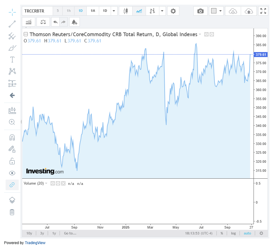 The CRB Index was up sharply as oil rebounded from the artificial floor at $60 with the index up +3.88%.. Gold crashed early in the week with prices plunging nearly 10% off the recent highs. There is no CFTC data with the government shutdown.
