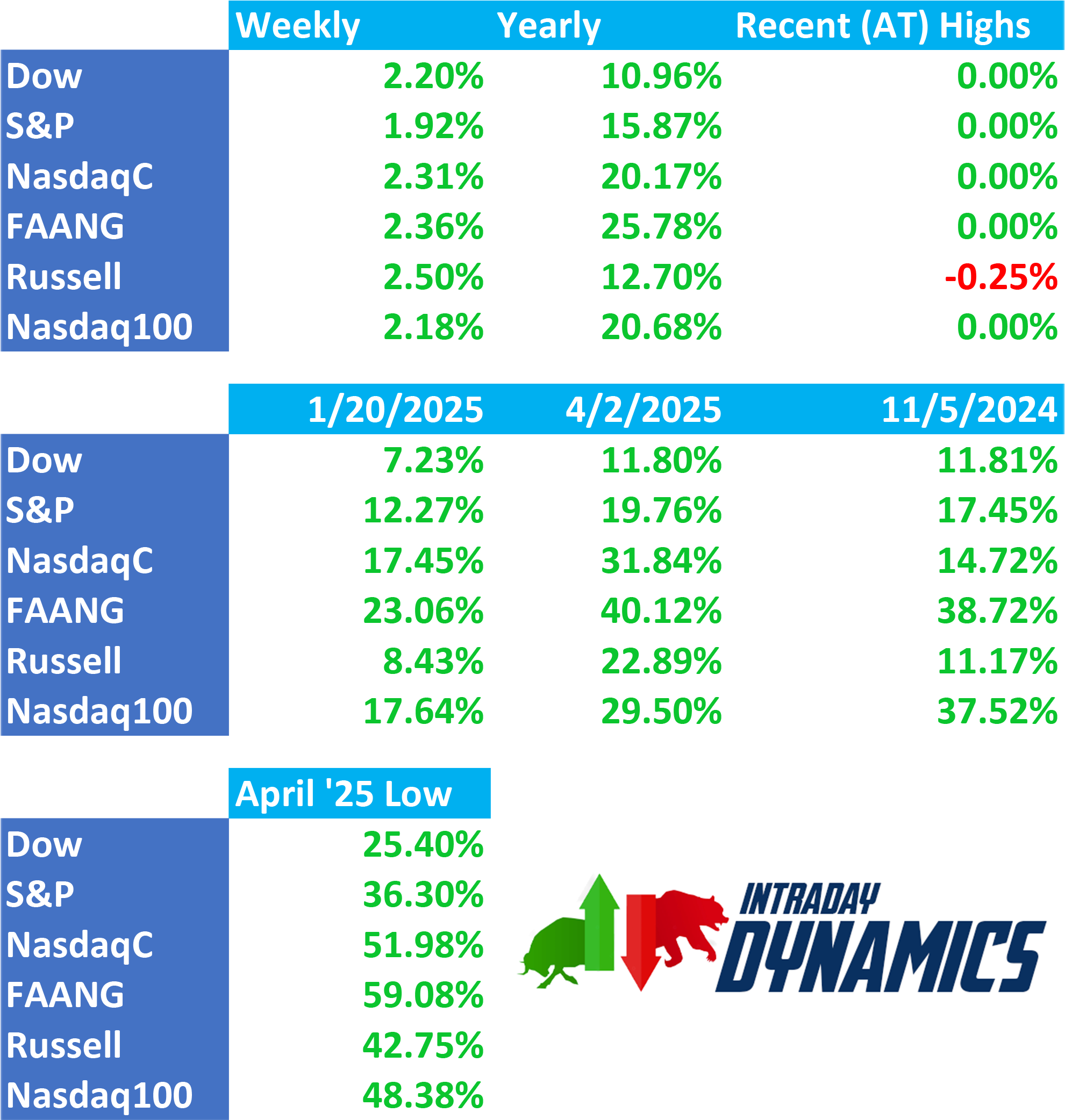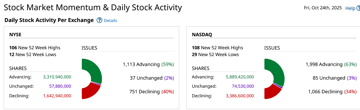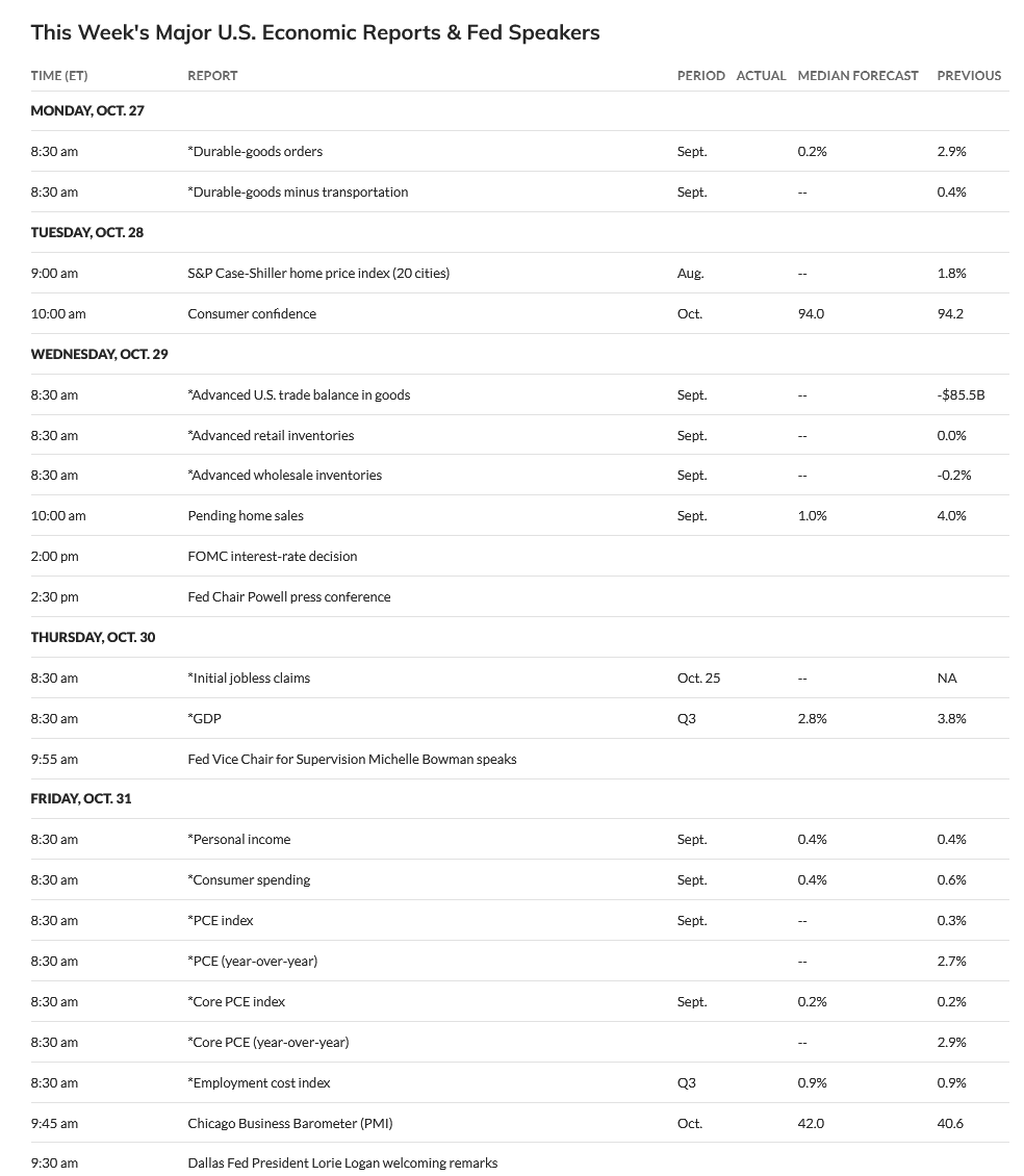 Major Indices Week of October 24, 2025