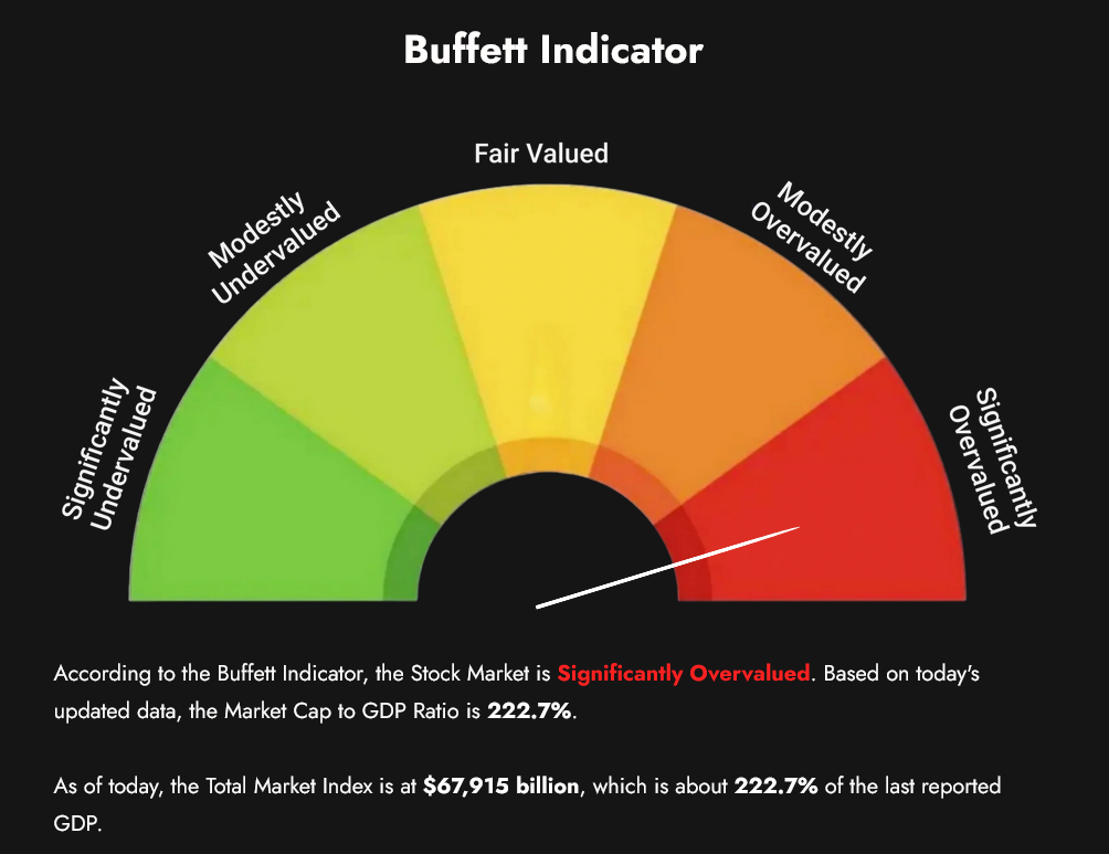 The Buffet Indicator set an ATH Friday, now sitting at 222.7%.