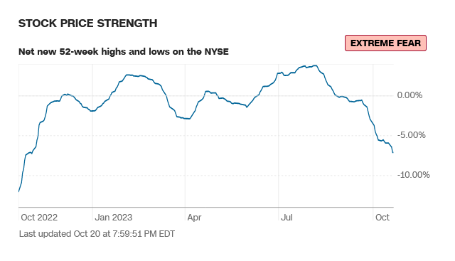 Sentiment remains in EXTREME FEAR with last week’s trade. The AAII Sentiment Index fell back from its slight optimism sentiment last week. The VIX however, traded to the highest level since March of this year and closed on the weekly high. The 52-week, A/D continued lower to -7.10% which is a new low for 2023 and the lowest since October of 2022…indicating extreme fear. The Put/Call ratio sits at 1.00 even, another extreme fear reading. The Dow closed the week down -1.61%. The S&P was down -2.39%. The Nasdaq ended the week down -3.16%, the FANG closed down -3.28% with the Russell down -2.26% , as that market is moved into new 2023 lows. Bonds also plunged last week with all treasuries hitting new lows for the move and the 10-year moved to the highest yield since 2007. The nearby 30-year bond futures are testing monthly support in the 109232/108014 area. The CRB moved higher, led by rallying crude oil and metals, closing +0.82%. The Commitment of Traders CoT remains completely neutral .Asset managers have been doing some modest liquidation while the other major players are frozen in place. Monday marks minor timing and the next key timing point is 11/02-03.